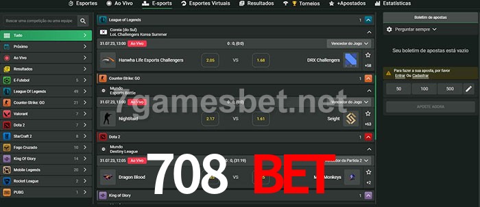 O 708 bet oferece uma grande seleção de opções de apostas em e-sports com probabilidades competitivas
